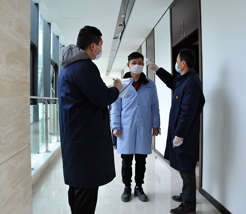 人防黨支部黨員始終堅守在防控疫情第一線,守好防護大門,全力配合客戶單位做好人員進出管控、體溫測量、信息登記等工作。