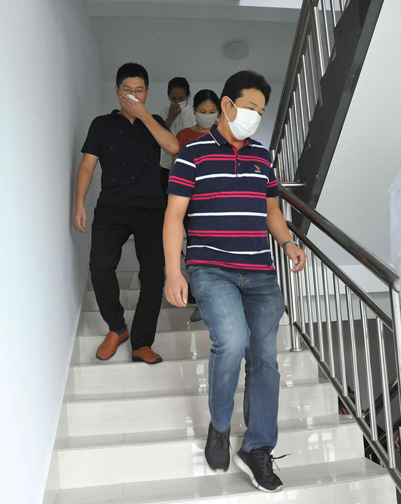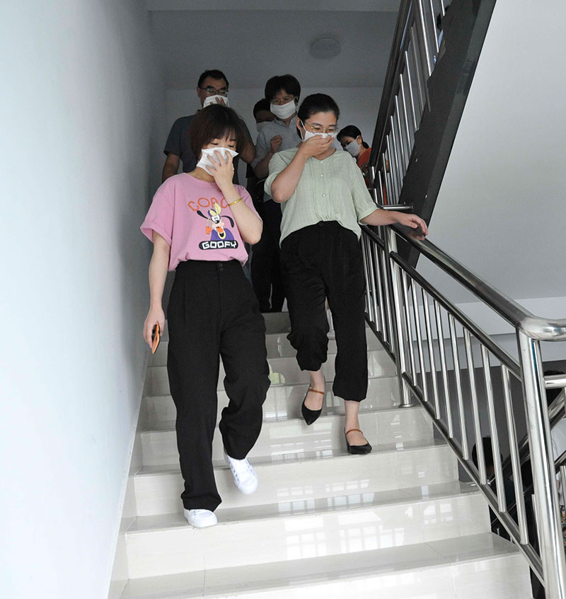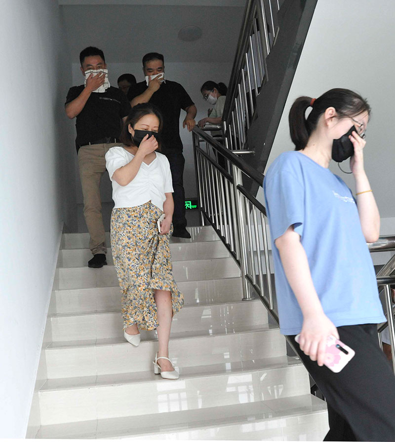 演練中,隨著總指揮指令下達(dá),消防警報(bào)響起,樓內(nèi)所有工作人員迅速、有序撤離,以最快的速度全部疏散至安全區(qū)域。