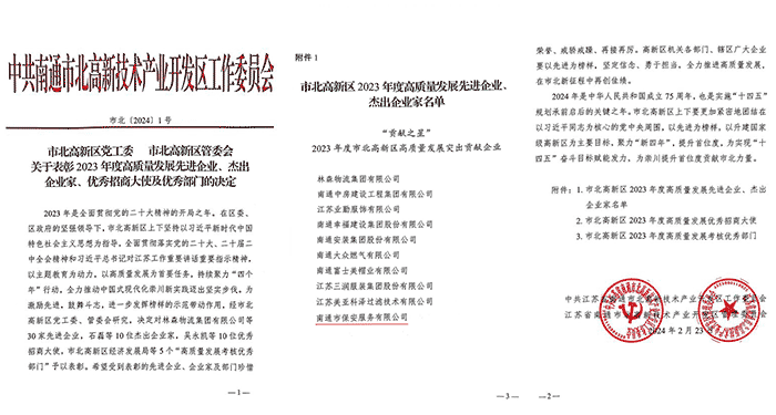——南通保安公司榮獲市北高新區(qū)“‘貢獻(xiàn)之星’--2023年度高質(zhì)量發(fā)展突出貢獻(xiàn)企業(yè)”稱號(hào)