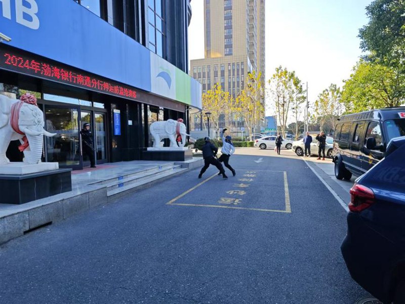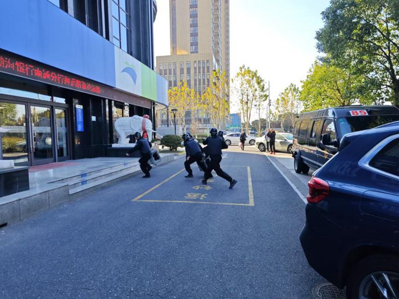 本次演練設(shè)置了運鈔車網(wǎng)點接送款環(huán)節(jié)防搶劫項目,包含武裝押運送款、接款時發(fā)生搶劫兩個環(huán)節(jié)。在確保安全的前提下,押運隊員積極參與,動作準(zhǔn)確到位,與銀行員工配合默契,從實戰(zhàn)角度進(jìn)行演練,達(dá)到了預(yù)期效果。